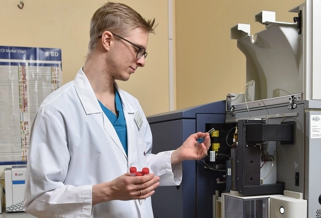Лаборатория молекулярной биологии, иммунофенотипирования и патоморфологии — одна из передовых в нашей стране лабораторий. В ней проводятся сложные генетические и патологоанатомические исследования для детей и взрослых, чтобы совершенствовать методы лечения рака. Здесь обследуются дети из 11 регионов нашей страны. Ежегодно проводится до 2500 высокотехнологичных исследований, направленных на диагностику лейкозов, лимфом, солидных опухолей, отслеживание эффективности лечения и выбора мишеней для назначения таргетной терапии.