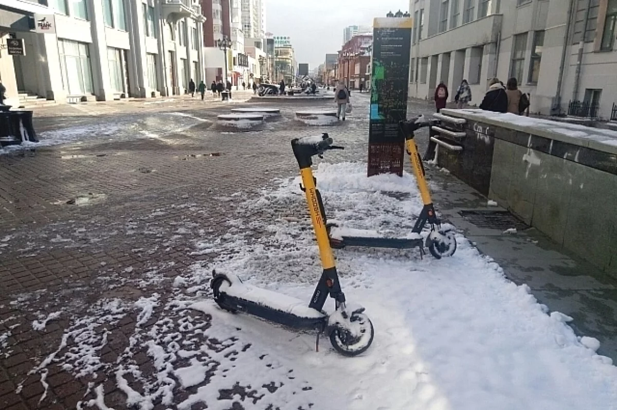 В столице Среднего Урала из-за резкого похолодания и снежных осадков приостановили работу кикшеринговые компании.