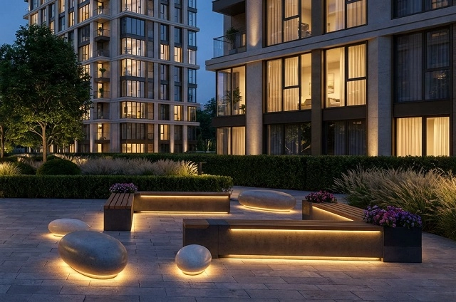 Бетонные изделия новой коллекции могут быть выполнены практически в любом из цветовых сочетаний — это позволяет внедрять их в айдентику любого парка или жилого комплекса в соответствии с фирменным стилем объекта. Конструктив изделий предполагает возможность интеграции линейной или контурной подсветки, чтобы с ее помощью создавать в городских пространствах атмосферу камерности. Также в изделия можно встраивать USB-модуль для зарядки телефонов.