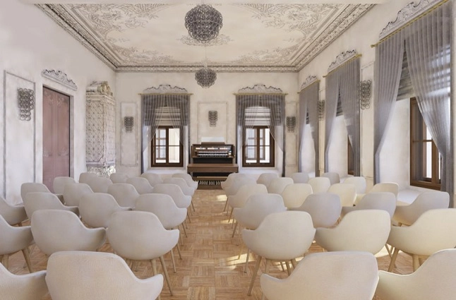Директор ООО «ЕСНРПМ», аттестованный МК РФ архитектор-реставратор высшей категории Дмитрий Демин пояснил, что после реконструкции филармония сможет использовать не только прежние помещения на двух этажах: чердачный этаж также будет капитально отремонтирован и станет пригоден для работы. В итоге полезная площадь здания увеличится с 729 до 1016 квадратных метров. Здесь разместятся репетиционные комнаты, музыкальная библиотека, музей, лифт для маломобильных групп населения и застекленная терраса для концертов. Еще одна большая перемена касается кабинета с камином: его объединят с соседней комнатой, благодаря чему появится музыкальная гостиная на 60–80 мест с органом.